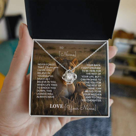 To My Daughter – A Gift from Your Lioness Mom | Love Knot Necklace | Personalized & Meaningful